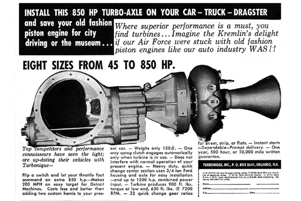 As for Turbonique, perhaps it’s not surprising that the story doesn’t end on a positive note. Due to the numerous safety issues faced with rocket fuel and turbines as a form of locomotion in general, the NHRA effectively banned the use of Turbonique setups for drag racing in 1967 after a string of incidents.
