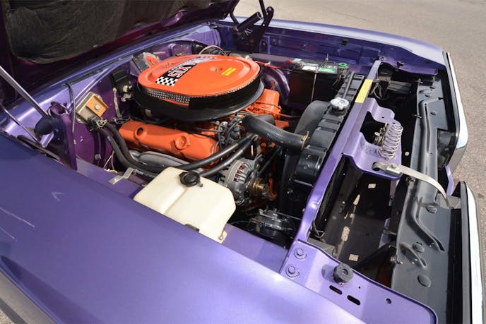 What the Super Bee lacked in frills it made up for with raw performance. Available in 1968 with either a 383ci big-block V8 making 335 horsepower or the notoriously underrated 426ci Hemi hooked to either a Mopar A-833 four-speed manual transmission with a Hurst Competition-Plus shifter, or the three-speed Torqueflite automatic, the Super Bee package also included a heavy duty suspension system, uprated brakes and high performance tires.