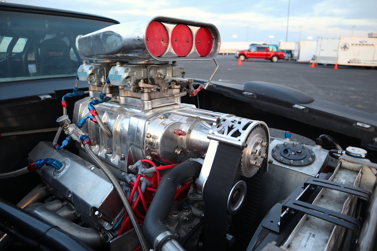 Engine: 505ci Wedge with a Weiand 8-71 Blower. Runs on pump gas.