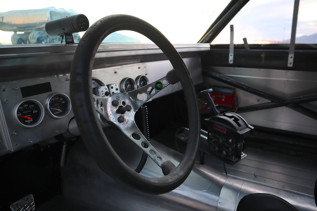 Moving to the interior of the car, Herb went with a rather spartan setup. A Kirkey containment seat, NASCAR-style rollcage, sheetmetal floor pans, and wide tubs in the back for those 33-inch Goodyears. A custom dash with a minimal gauge cluster rounds out the interior and allows Herb to monitor things from the cockpit.