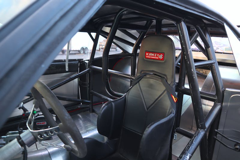 Moving to the interior of the car, Herb went with a rather spartan setup. A Kirkey containment seat, NASCAR-style rollcage, sheetmetal floor pans, and wide tubs in the back for those 33-inch Goodyears. A custom dash with a minimal gauge cluster rounds out the interior and allows Herb to monitor things from the cockpit.
