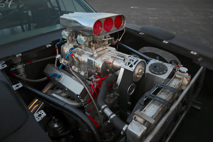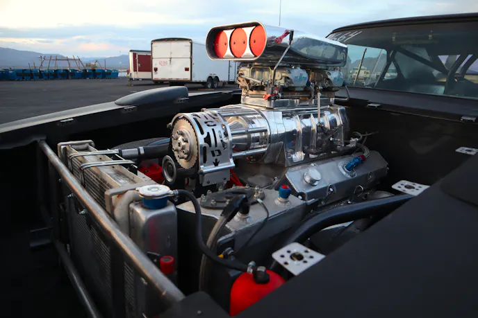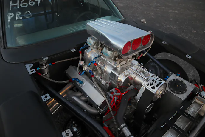 Engine: 505ci Wedge with a Weiand 8-71 Blower. Runs on pump gas.