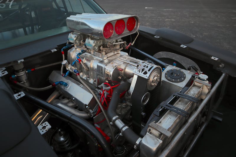 Aside from the sheer size of the Daytona clone, it’s a car that announces its presence with stance. Herb set the body on top of his custom tube chassis with custom suspension, coilovers, and wheels and tires. It rides on the always-classic Weld Drag Stars. The rears are 15×10 to accommodate the 33-inch Goodyear Eagle slicks, and the fronts are 15×4 with Mickey Thompson ET Fronts to complete the raked hot rod look.