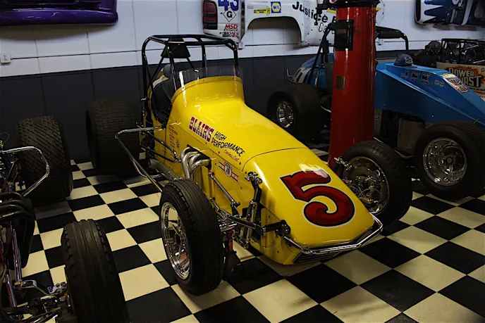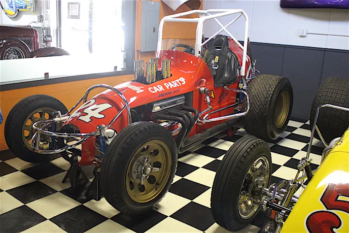 We first walked in and were greeted with a number of midgets racecars from years gone by. They were all beautifully restored, and out in the open where we could see the cockpit that those daredevils rode in, with little to protect themselves. Just over one shoulder was the tire, kicking up dirt, and over the other shoulder was the exhaust, generating lots of heat. Ed Justice, Jr., told us, “Lots of guys would burn their arms during the race.”