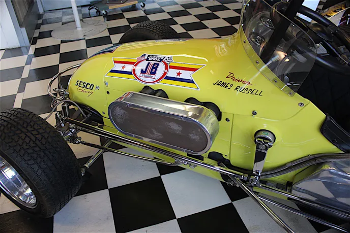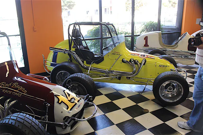 We first walked in and were greeted with a number of midgets racecars from years gone by. They were all beautifully restored, and out in the open where we could see the cockpit that those daredevils rode in, with little to protect themselves. Just over one shoulder was the tire, kicking up dirt, and over the other shoulder was the exhaust, generating lots of heat. Ed Justice, Jr., told us, “Lots of guys would burn their arms during the race.”