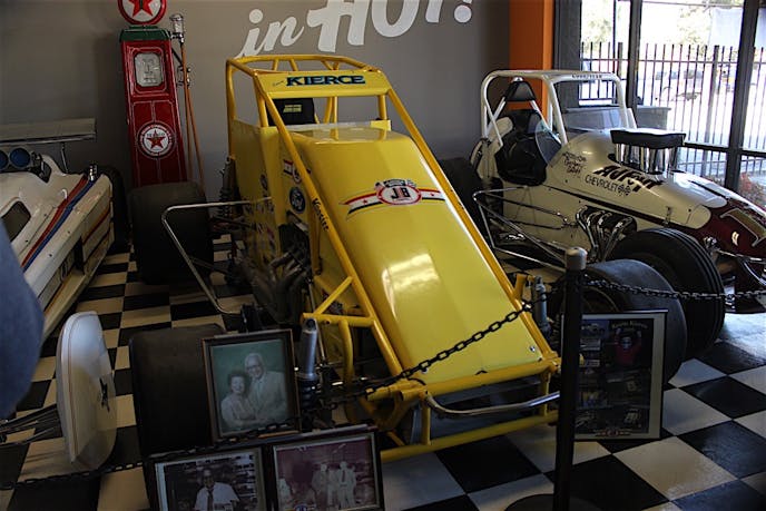 We first walked in and were greeted with a number of midgets racecars from years gone by. They were all beautifully restored, and out in the open where we could see the cockpit that those daredevils rode in, with little to protect themselves. Just over one shoulder was the tire, kicking up dirt, and over the other shoulder was the exhaust, generating lots of heat. Ed Justice, Jr., told us, “Lots of guys would burn their arms during the race.”