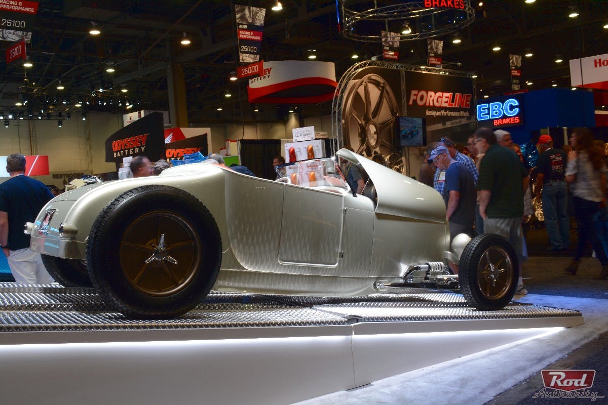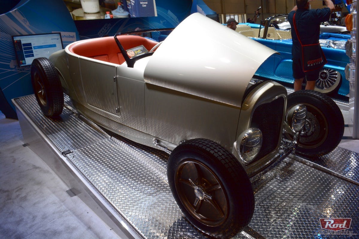 Sprayed in Kindig’s custom Modern Classikk paint color “Bubbly,” this one-of-a-kind rod was the perfect platform to debut the new paint line, which Kindig created to not only have a classic feel to it but also give every build sprayed with it an extra level of depth and dimension.