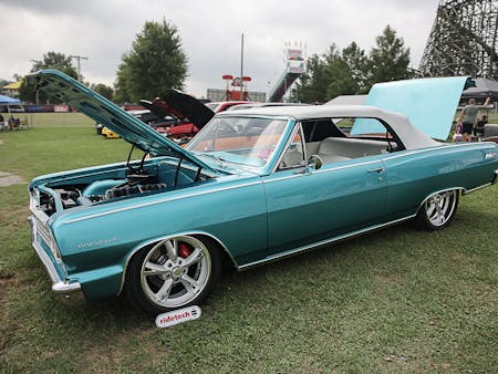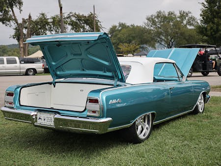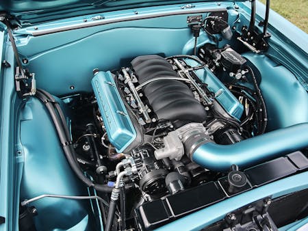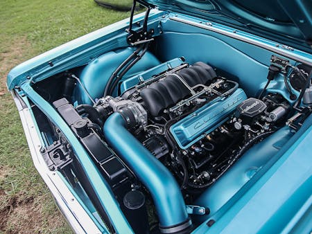 Heath Hoover blew the Malibu totally apart and got to work making it into a show-stopping ride. The 283 cubic-inch mill was replaced by a modern LS3, and the four-speed was removed in favor of a TREMEC T-6060 transmission. Under the Malibu, you’ll find an entire Ridetech catalog of parts, plus a GearFX 9-inch rearend. Hoover also added a full Wilwood brake package to the car, along with Vintage Air A/C, cruise control, and other upgrades.