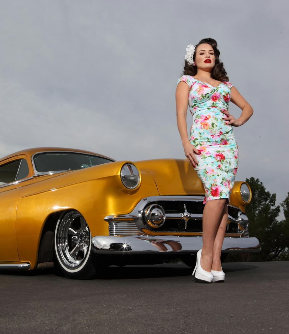 Well, I’ve been into the rockabilly/vintage lifestyle since I was a teen, so it evolved from that. I would go see bands and attend car shows religiously. I started meeting people with similar interests, who encouraged me to try “pinup” modeling. I was finally talked into my first car shoot at what was the “Ventura Primer Nationals” years ago; the photos were published in a well-known magazine. That’s when I knew I had to just go for it.