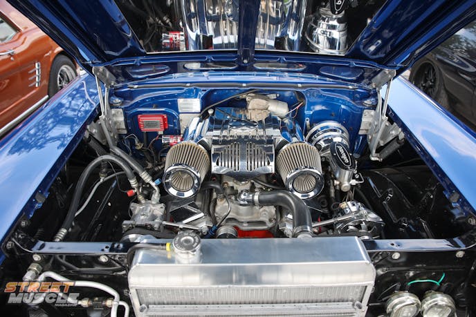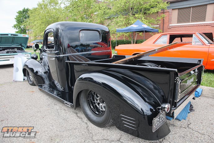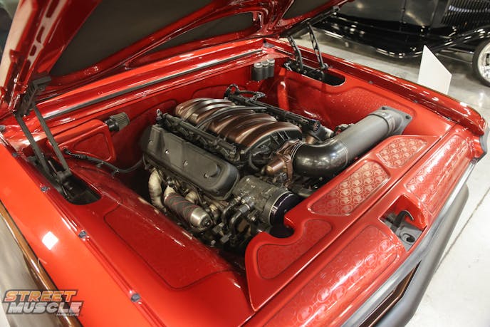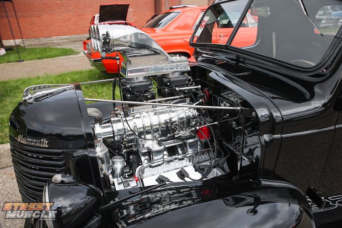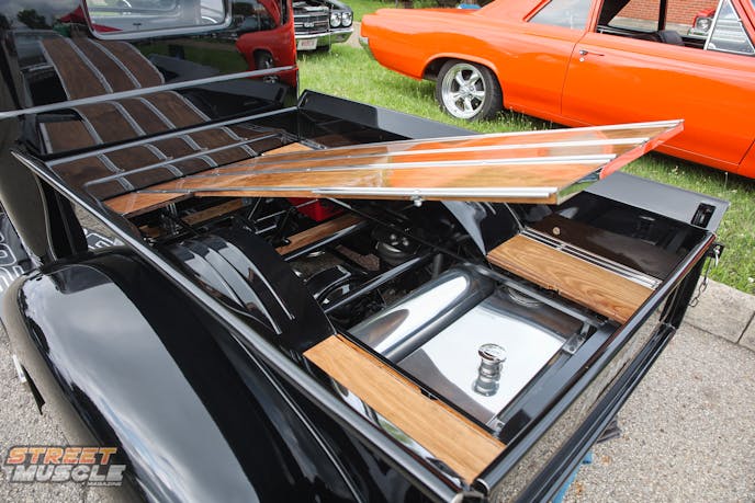 You don’t see many Plymouth PT 105 trucks at shows, let alone any as radical as Ryan Stoll’s “Mistress”. Ryan found Mistress in a barn and then completed a total frame-off restoration of the Plymouth. A 1957 Chrysler 392 Hemi that features a 6-71 supercharger, and dual Holley 1050 CFM EFI throttle bodies power the truck. Ryan controls the engine with a Holley Dominator ECU. The bed of the truck was built with hand-cut wood.
