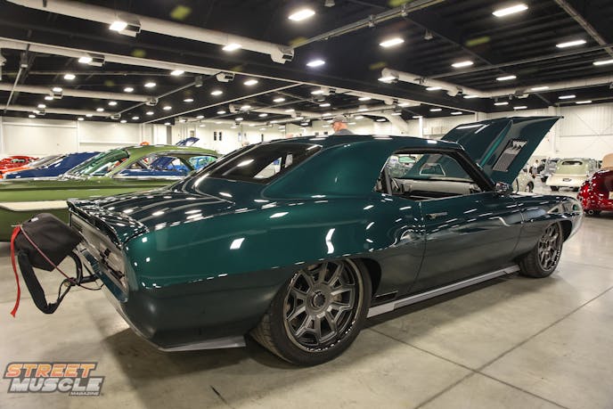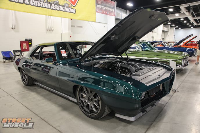 Doug and Lori Lawson’s 1969 Camaro RS really stands out thanks to all the custom touches Doug built into the car. A Martz Engineering Pro Street chassis give the Camaro a great stance and allow the Bonspeed wheels to really shine. Under the hood, you’ll find 502 cubic-inches of Chevy power. Shusta Custom Interiors created a stunning cabin space with black leather. The PPG custom mix Teal that was sprayed by Classic Automotive and Judson Autobody makes the car pop.