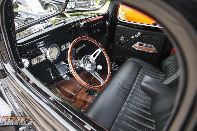 Carl Akins worked with Rick Lefever to build a slick 1932 Ford three-window coupe. Ray Zeller built the 369 cubic-inch Ford engine that has been bolted to a TREMEC five-speed transmission. All the horsepower is transmitted to the road via a Winters quick change rearend. Mick’s Paint took care of the bodywork and Advanced Plating made all the chrome shine like new. Ron Mangus created an amazing custom interior that totally fits the car’s vibe.