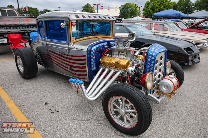 Nothing screams American hot rodding more than a 1930 Ford packing a 468 cubic-inch big-block Chevy. Jeff Detwiler built “Patriot” using a truly patriotic theme front to rear. From the red, white, and blue colors, to the American flag graphics, this hot rod screams USA.