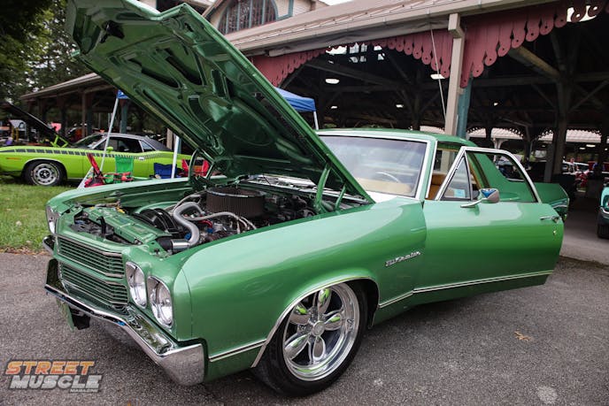 It’s always cool to see a home-built ride a big show. Scott and Sandy Cameron completed a frame-off restoration of their 1970 El Camino in their two-car garage. This classic Chevy is powered by a numbers matching 350 cubic-inch small block, and backed by a TH400 transmission. Kemper’s Auto Trim took care of the interior that looks great with the custom PPG green that was sprayed on the car.