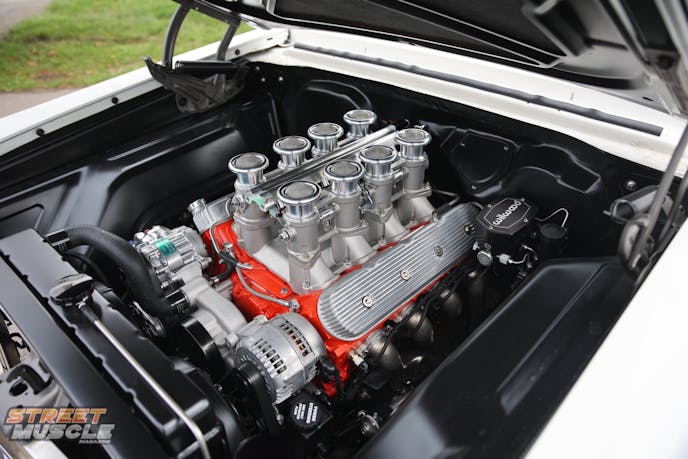 Doug Cooper’s “Plain Jane” 1966 Chevy II really lives up to its name. The car is still rocking its original paint, and from a distance just looks like a lightly modified Nova. However, when you step a little closer, you’ll notice the complete TMI interior that was installed by Dynamic Speed and Custom. You’ll also see the 550 horsepower LS-based mill that’s wearing a stack fuel injection system from Borla under the hood. The DSE front and rear suspension help the Nova achieve an athletic stance and handle like a dream.