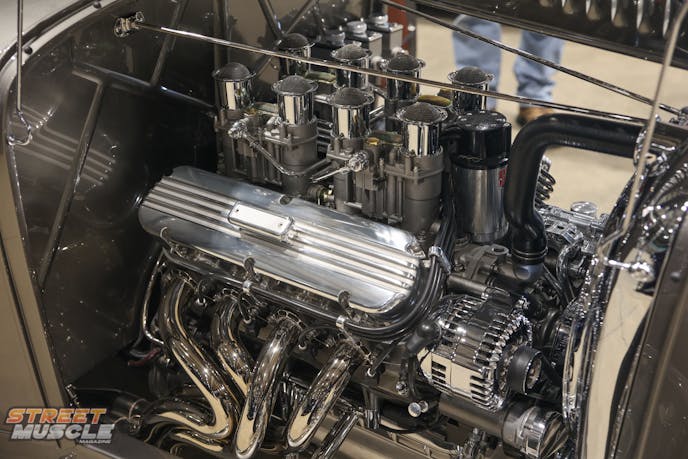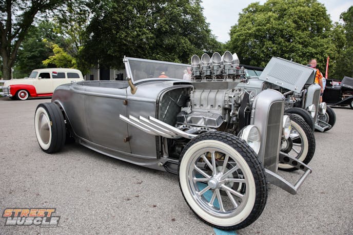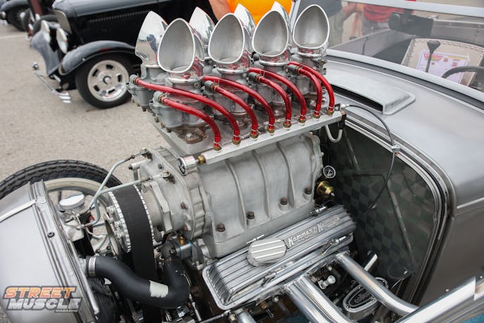 A simple build can really get a lot of attention, and Mike Kilbourn’s 1932 Ford roadster exemplifies this approach. The home-built Ford features a bare metal body that rides on a Roadster Shop chassis. Mike wanted the Ford to have plenty of rip, so he built a 350 cubic-inch blower motor that’s home to a 6-71 supercharger and Scott 8×2 intake system.