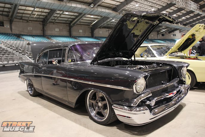 Gerald Weiler brought a Boyd Coddington-built 1957 Chevy known as “Hercules” to the show. This classic Chevy was totally worked over by Coddington and YearOne from front to rear. A custom GM ZZ430 engine and 700R4 transmission propel Hercules down the road with ease. The car was painted a special-order Corvette Electron Metallic Blue by Coddington. The suspension was totally upgraded with aftermarket parts, and would it even be a vehicle built by Boyd Coddington if it didn’t feature a set of his custom wheels?