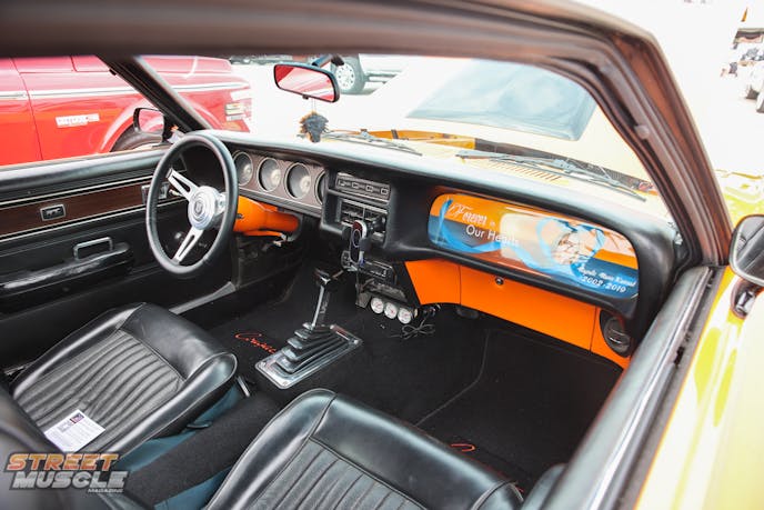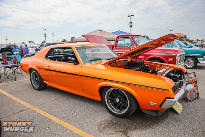 Danny Karcask’s 1969 Mercury Cougar is a stout build. The Sunset Orange paint isn’t something you typically see on one of these cars and it looks great. A 408 cubic-inch stroker motor that’s cranking out 570 horsepower makes sure the Cougar is as fast as it looks. The engine breaths out of a custom Eleanor-style side exhaust system that uses Roush mufflers.