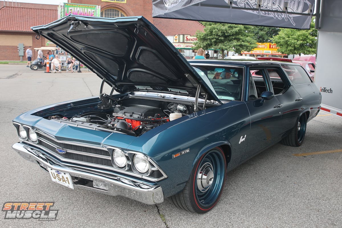 Doug and Lori Lawson’s 1969 Camaro RS really stands out thanks to all the custom touches Doug built into the car. A Martz Engineering Pro Street chassis give the Camaro a great stance and allow the Bonspeed wheels to really shine. Under the hood, you’ll find 502 cubic-inches of Chevy power. Shusta Custom Interiors created a stunning cabin space with black leather. The PPG custom mix Teal that was sprayed by Classic Automotive and Judson Autobody makes the car pop.