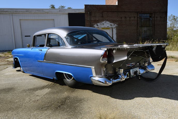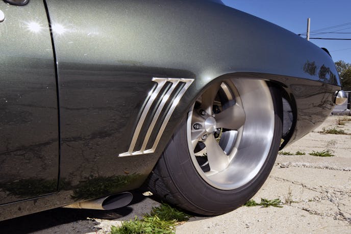 One of the attention-getting visuals on the Camaro is the rolling stock. On the street, one-off custom 5-spoke wheels were designed and machined by Hot Rods by Boyd. The 15- by 4-inch fronts use Mickey Thompson Tires Sportsman S/R 26×8.00R/8 while the rear wheel tubs contain massive Nitto 420 305/50R20 tires.