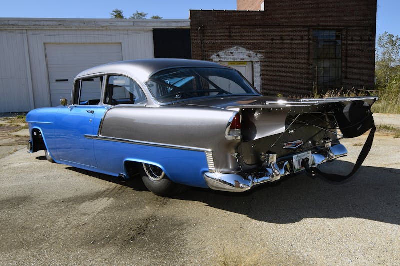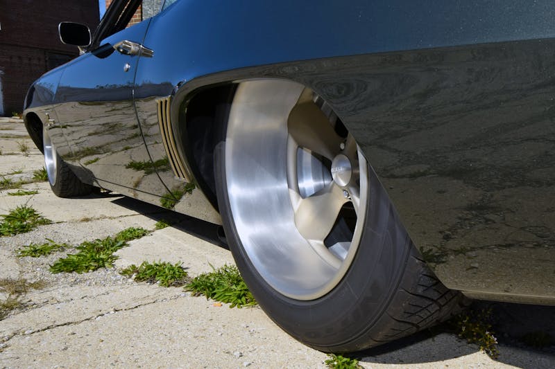 One of the attention-getting visuals on the Camaro is the rolling stock. On the street, one-off custom 5-spoke wheels were designed and machined by Hot Rods by Boyd. The 15- by 4-inch fronts use Mickey Thompson Tires Sportsman S/R 26×8.00R/8 while the rear wheel tubs contain massive Nitto 420 305/50R20 tires.
