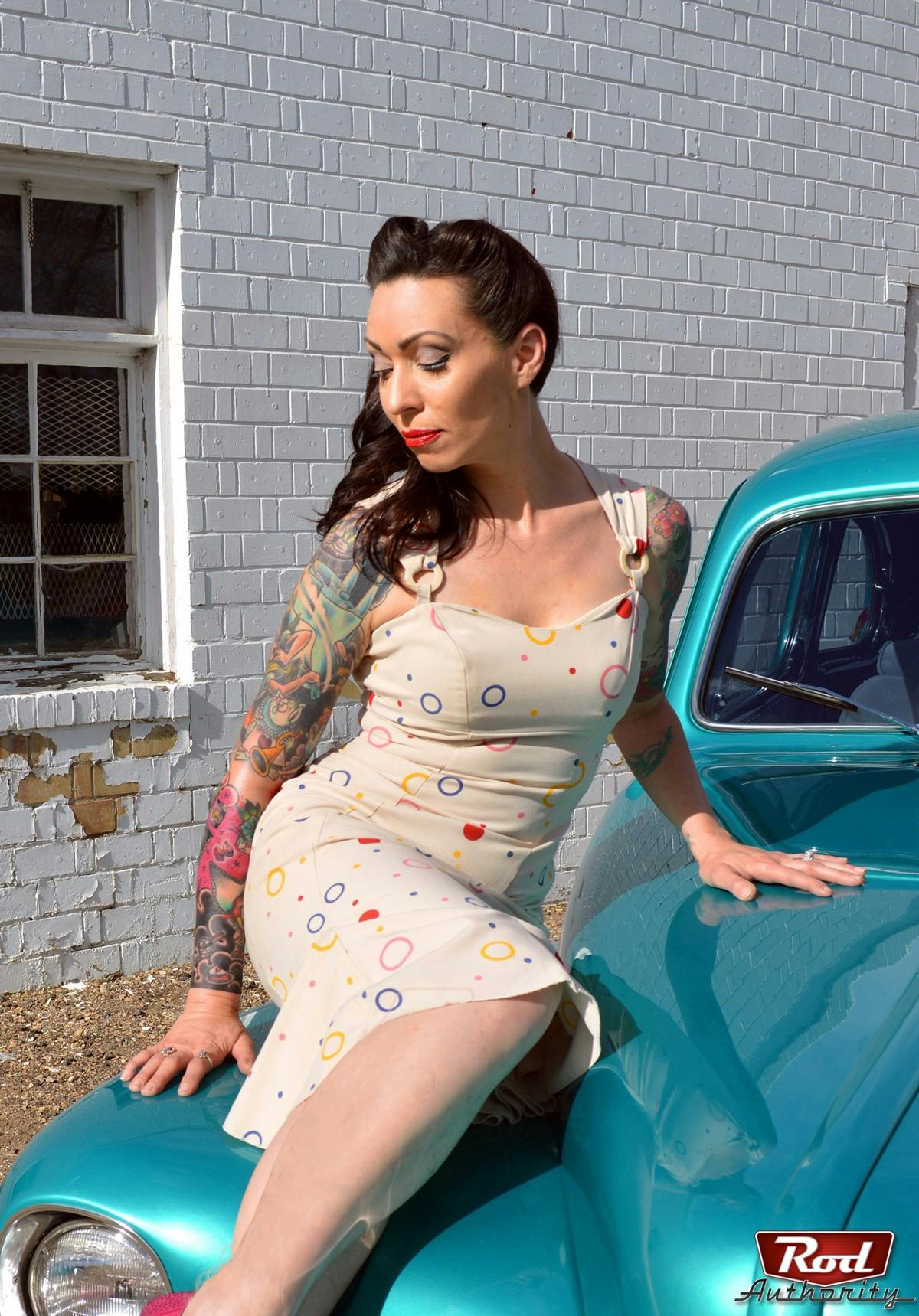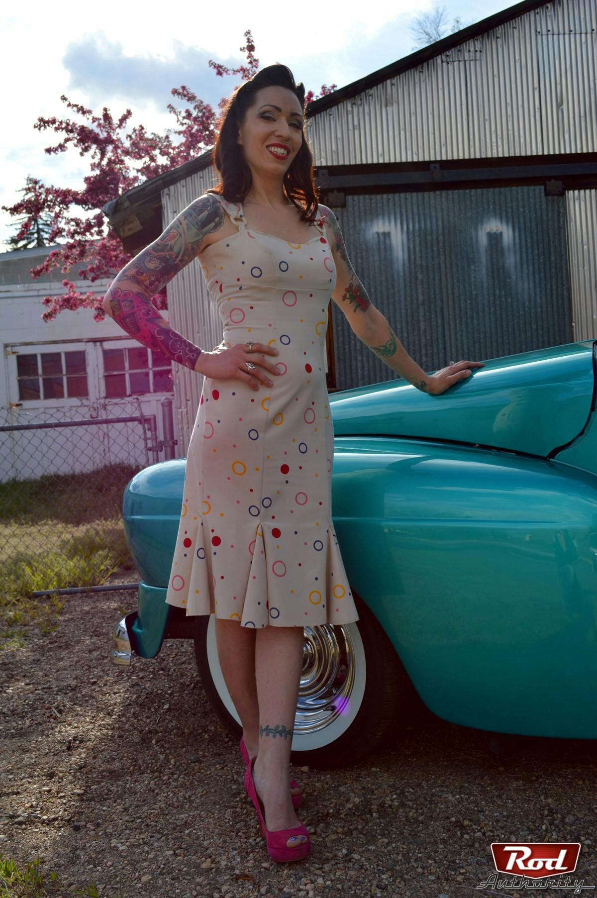 Just like her classic ride, Dolan is a unique beauty with plenty of personality, warmth, and style. With a true passion for everything vintage, including classic pinup styling, Dolan’s collection of classic clothing, from swimsuits to high heels is just about enough to make any hot rod gal envious, while her intricate tattoos not only add more edge to her look, they also tell a lot about who she is and what she is passionate about.