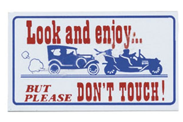 So my request is simple: Let’s clean it up a little, shall we? Many of us want to take our children, nieces or nephews to these car shows, and we don’t want children to see these offensive signs. If you want to post that in your own garage, for your own small children to read, that’s your prerogative. But show a little class, will you? Enough with the threats; a simple “Please Don’t Touch” will get your message across just fine.