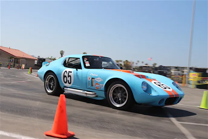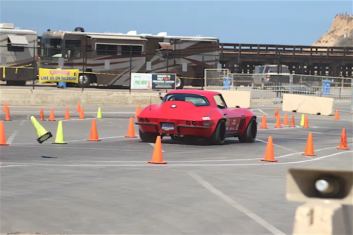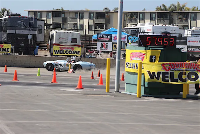 The man of the day was Scott Fraser driving a thoroughly-built ’66 Shelby Cobra, no plastic fantastic kit car, real British aluminum and Ford power. Wheeling an example of motorsports history this serious, around a course lined with unforgiving K-rails will make most collectors grimace — but Fraser left sentimentality at the gate and gave it all he had.
