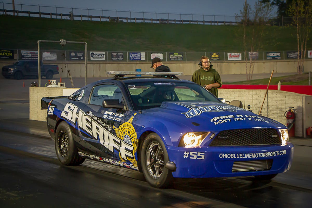 “Our organization promotes education, public safety, and lets local law enforcement interact with the community to promote a better understanding between us and the public. At our track events, we will allow the public to challenge the cops to a race. Our members are comprised of police and firefighters (active or retired), who conduct educational programs using marked emergency vehicles. We have reached thousands of people including being on national TV during the opening ceremonies of the 2022 NHRA Summit Nationals at Summit Motorsports Park in Norwalk Ohio,” Leight says.
