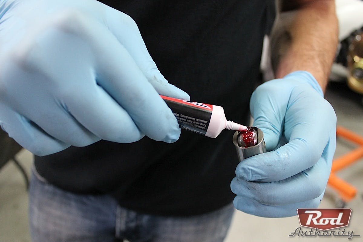 Now that the timing assembly, oil assembly, and fuel pump were in place it was time to move onto the assembly of the top end components. Assembly lube was applied to the bottom and side of our lifters before inserting them into the lifter valley.