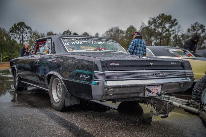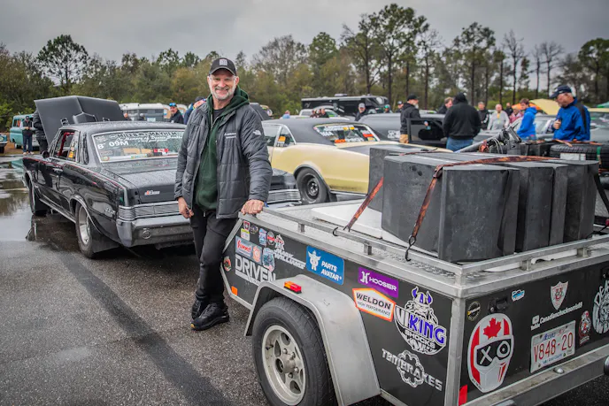 So, for the Pure Pontiac Power purists we present this remarkable car. Guido (pronounced Gheeto) hails from Red Deer, Alberta — that’s Canada, sports fans — and he cruised down to Florida for Sick Week with his father riding shotgun, a friend in the backseat, and pulling a trailer full of necessities. Roundtrip was nearly 7,000 miles. Race weight is a less-than-svelte 4,090 pounds and it’s a few hundred more with the trailer in tow. Hey, those Pontiac engines were always known as torquey beasts.