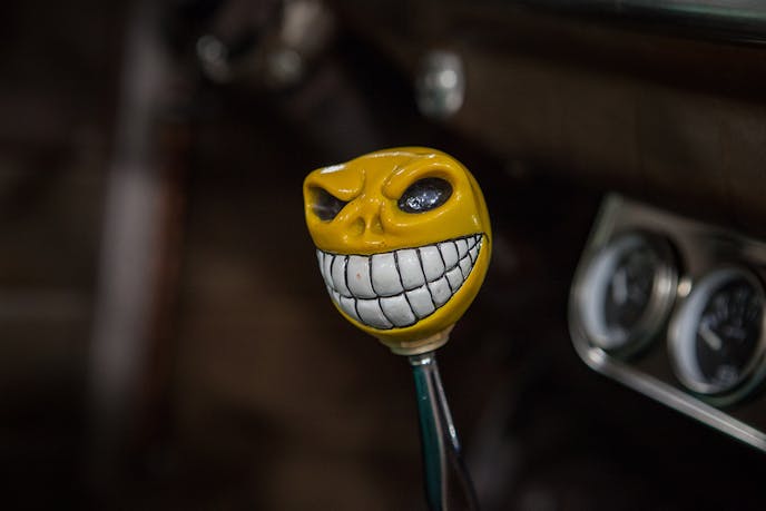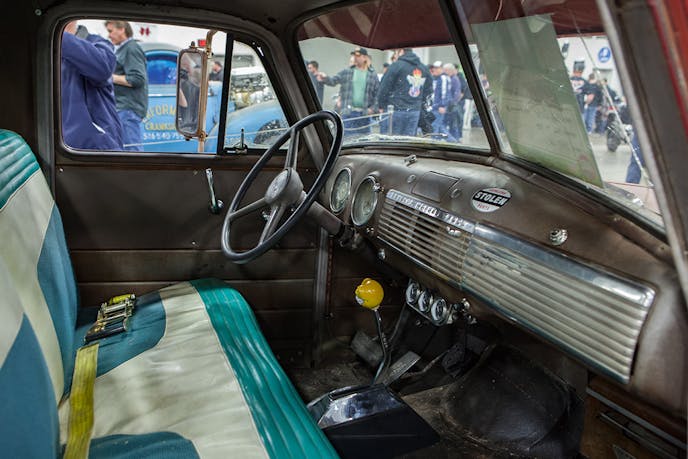 Randy retained the original heater box that came with the cab. For a bit more personality, he added a custom shift knob. The vehicle’s vitals are conveyed to the driver via a trio of black face gauges.