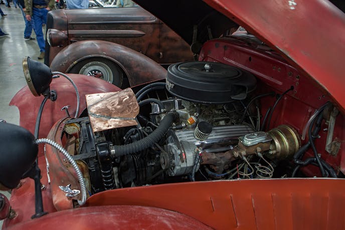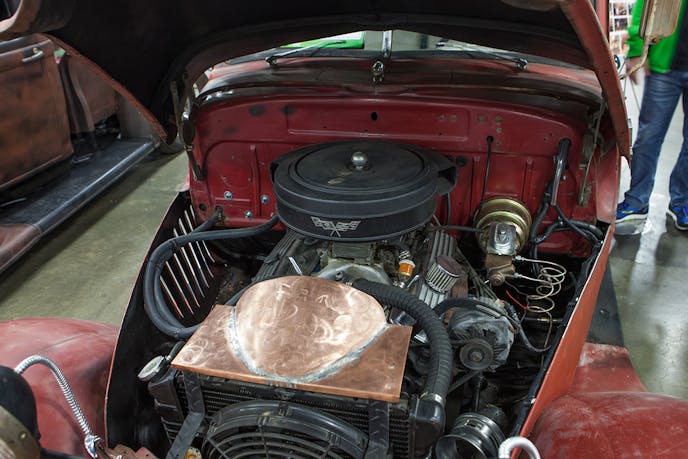 A Corvette engine sits under hood. Blinding speed wasn't the goal for this build, but the Corvette engine does a good job propelling it down the road.