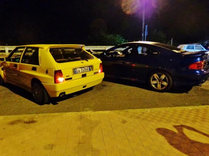 The weather was wet and a bit dewy which I think kept the Ferrari count down a bit. I did run into a Ferrari test driver on the Autostrada just outside of town — a light blue Ferrari V12 Berlinette with the factory plastic still on it. He didn’t pay me any attention until he rode past my driver side and saw the hood. So he slows down and starts trying to bait me into chasing him (started out in front instead of right next to me nose-to-nose). I got pulled about a car or so and it was steady after that (mostly because he probably let off). Win or lose, its still cool to play with a Ferrari on its home turf.