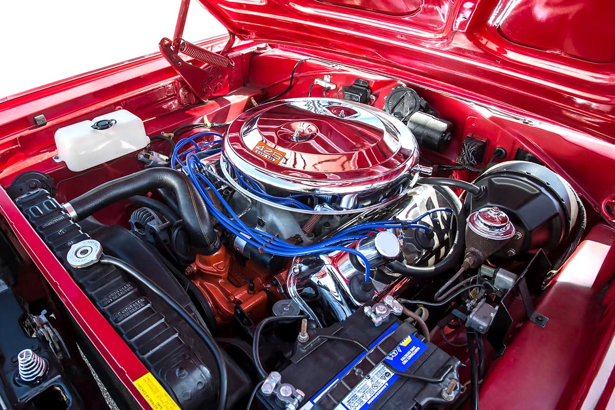 The mid-range engine options included a 361 cubic-inch V8 with 265 ponies, and a 383 V8 with 325.