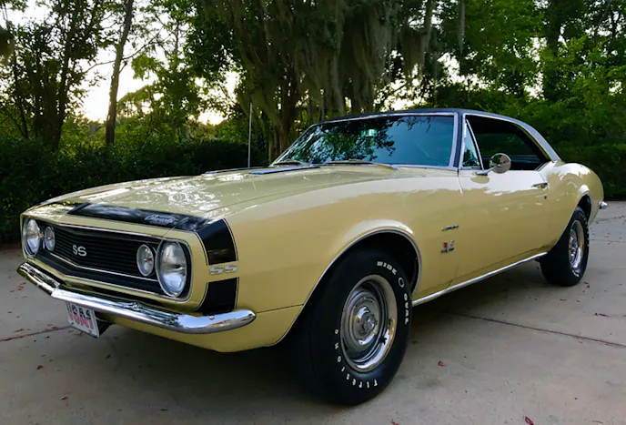The SS package gave you the 350 cubic-inch V8, with the L35 396 available for an upcharge. Non-functional hood air intakes were also included, as was special striping and SS badging on the grille, gas cap, and horn button. The SS package could be combined with the RS to yield a Camaro SS/RS.