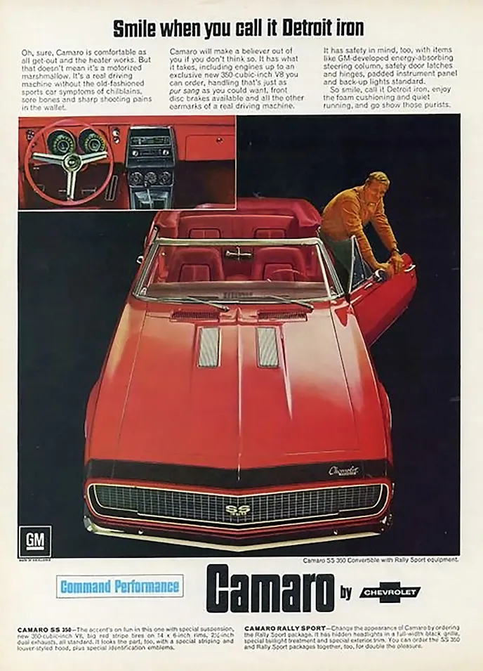 Many immediately wondered exactly what a “Camaro” was. The answer varied wildly depending on who you asked. Chevrolet General Manager, Pete Estes, claimed that the name referred to “the comradeship of good friends, as that is what a personal car should be to its owner. To us, the name means just what we think the car will do… go.” Others had more grounded answers. Some claimed it was French slang for “buddy,” while several in the automotive press were told that it was “a small, vicious animal that eats Mustangs.”