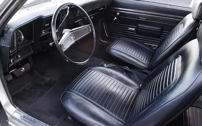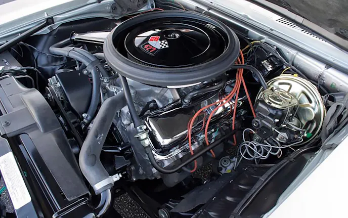 Added to the car was the F41 heavy-duty suspension including heavy-duty springs with five-leaf rears, a heavy-duty radiator, power front disc brakes, F70x14 white letter tires, and a steel cowl-induction hood.