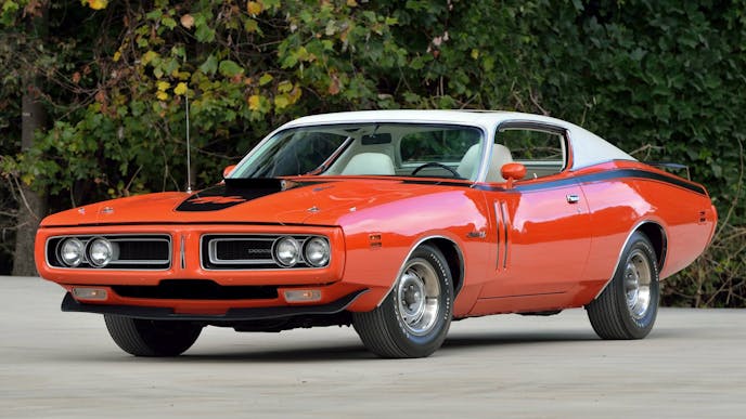 New to the Charger line was the high-performance R/T (or Road and Track) trim, to which the big engines were reserved. The 440 Magnum with 375 horsepower was the base R/T motor, while the Hemi once again topped the line of mills.