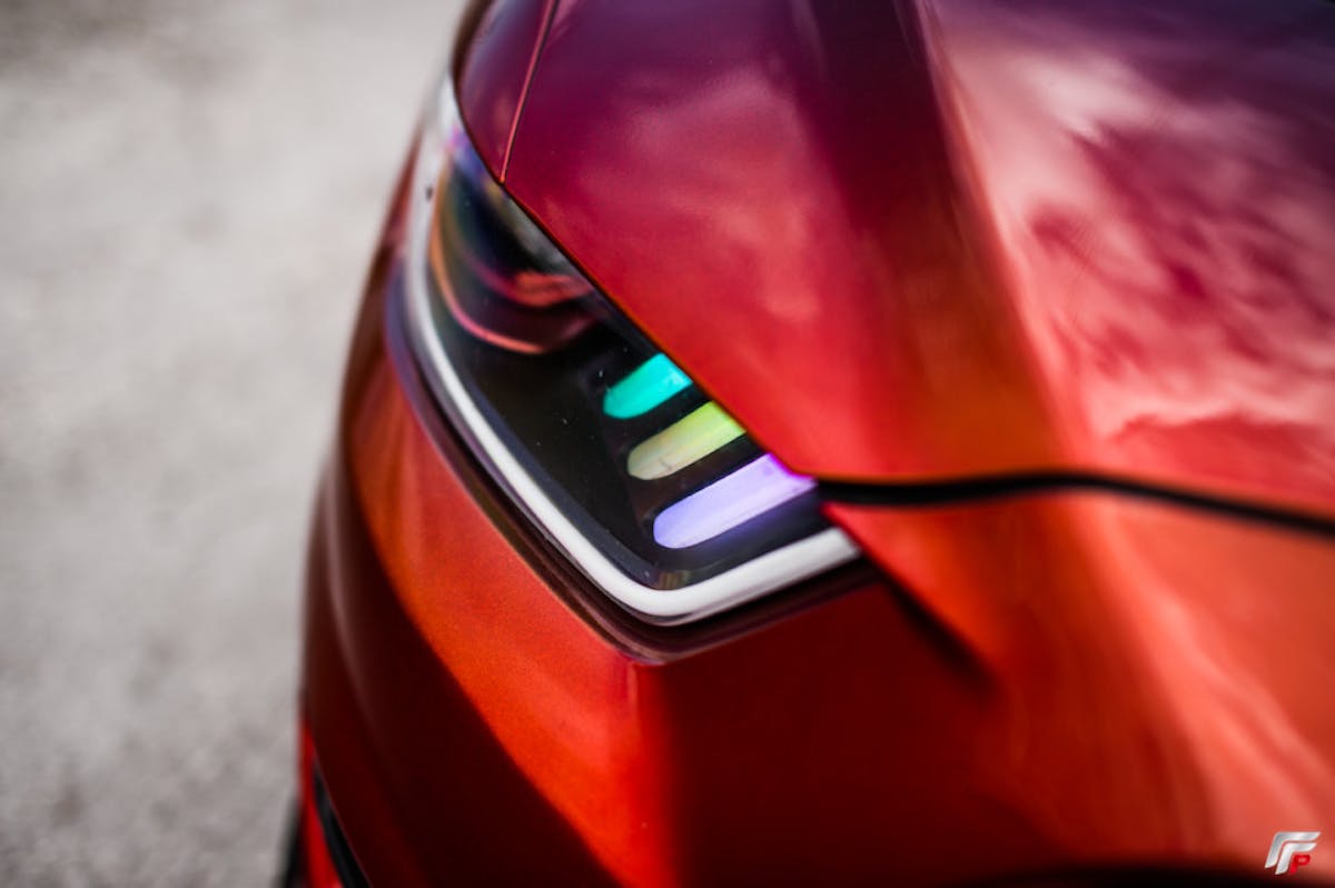 - Exterior (Paint, wrap, aero, custom bodywork, etc.): Ikon GT350 Front Bumper, V2 Spoiler, Candy Red Autoflex Dip, CarbonFiber Wrapped Roof, Chasing Underglow, Starry Night Halo’s Demon eyes, Tribars and LED Tubes.