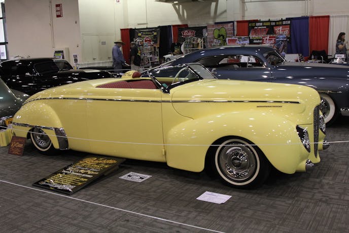 We’re still showing some custom cars from this year’s Grand National Roadster show, and we would be remiss if we didn’t feature the Keith Dean built 1940 Mercury Kustom. This Merc was designed and built by Keith Dean for Harold Saul, and was displayed prominently at the 2017 GNRS.