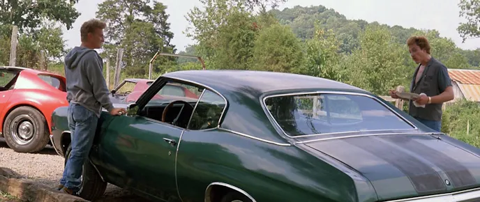Another featured car in the movie is a 1970 Chevrolet Chevelle SS that Brad Sr. gives his son. Dressed in faded Forest Green paint with twin black stripes and a black interior, the car is a bit of a beater that is clearly missing the once-equipped vinyl roof covering.