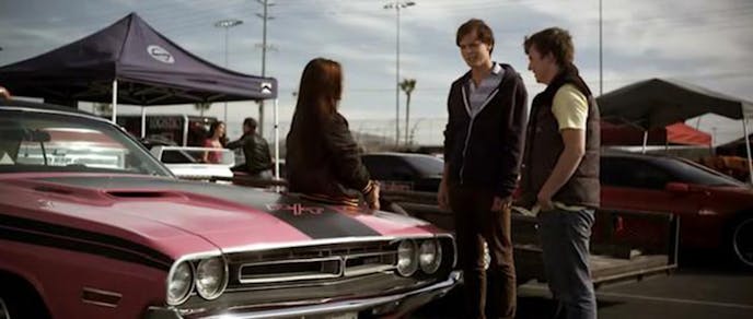 Other notable cars in the movie include a smattering of late-model Challengers, old school Chevelles, Mustangs, Olds 442s, a ’55 Chevy Bel Air, and a pair of pretty sweet ’69 Camaros. My absolute favorite car in the movie though has to be a 1971 Dodge Challenger R/T, which appears to be an original 426 Hemi car. It is resplendent in Panther Pink, but alas only appears for a few brief moments towards the end of the film.