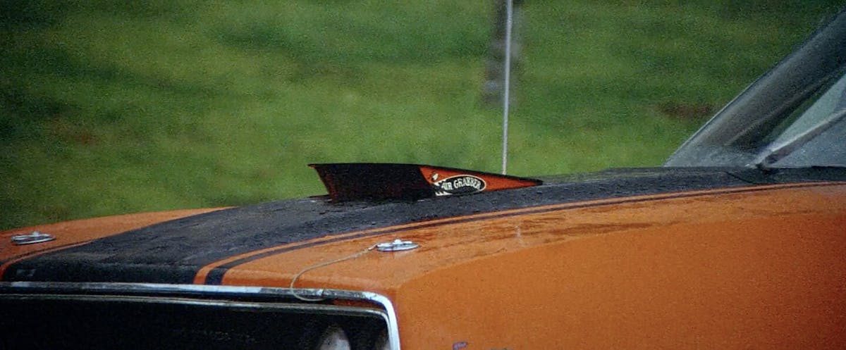 Unfortunately, we never get a look under the hood, but given the car has an Air Grabber, it could only have been equipped with one of two engines: the 440 cubic-inch six-barrel or the legendary 426 Hemi. Since only 75 Hemi hardtops were made that year, I’m guessing Suzanne’s car was one of the 697 440 six-barrel, four-speed cars that were produced. And boy, does it sound good on screen.