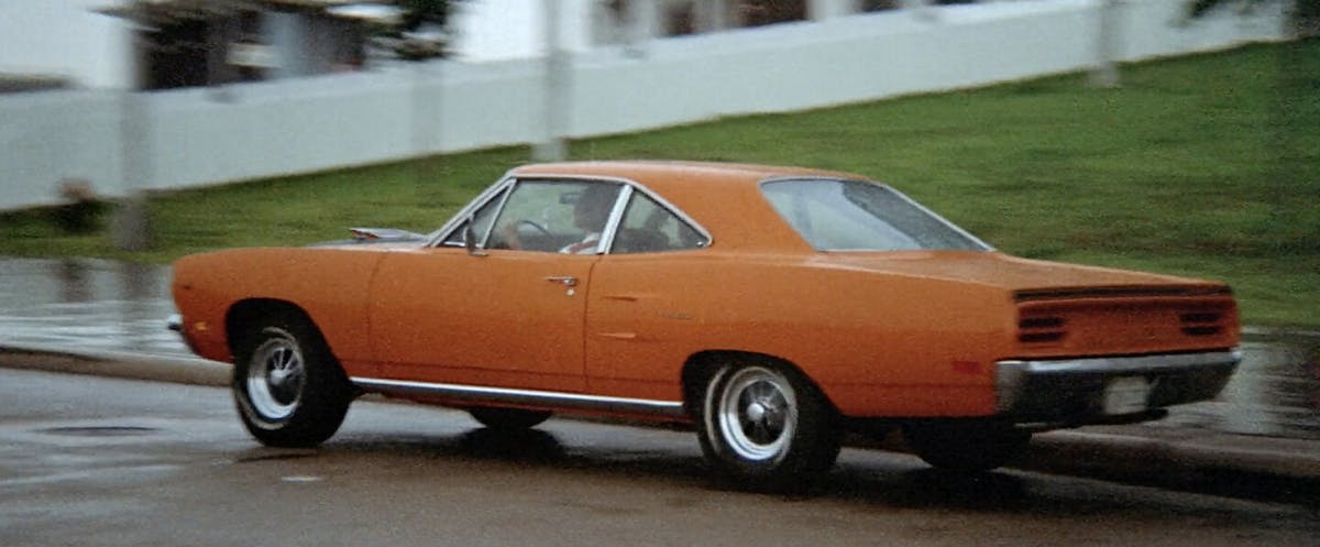 Virtually having a role of itself in the movie owing to how much screen time it gets is Suzanne’s car: a stunning, Vitamin-C orange over black 1970 Plymouth Road Runner hardtop.