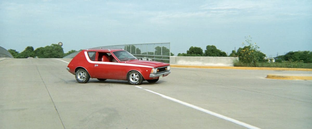 Another featured vehicle is Louise’s 1970 AMC Gremlin. Some of you may scoff at it as being a progenitor of the “malaise years” cars that American auto manufacturers would soon be pumping out en masse, but this Gremlin actually looks 1970s kitschy cool. Draped in Firecracker Red paint with a white hockey-stick side stripe, Louise’s ride also features in the main car chase and does some thrilling jumps and slides in it.