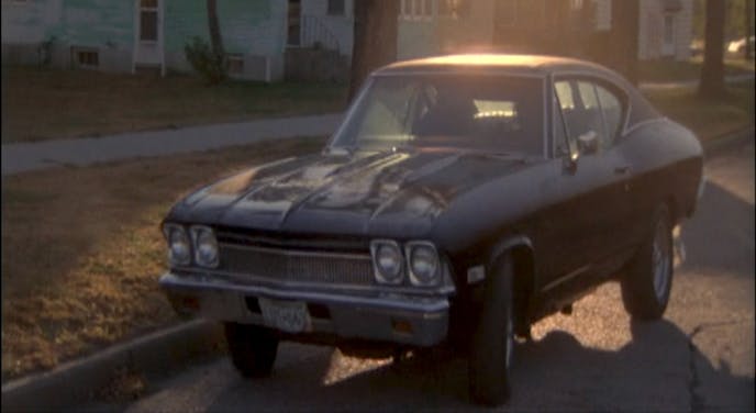 Dylan’s personal car is a 1968 Chevy Chevelle Malibu two-door sport coupe. Dressed in black with a black vinyl top and a black interior, the car looks rather stock save for a set of mag wheels and a roll cage. We never get to see under the hood, but judging by the live sound recordings during the racing sequences, I’d guess the car is packing a Turbo-Fire 327ci V8. We do see Dylan shifting what appears to be a Muncie four-speed a few times though.