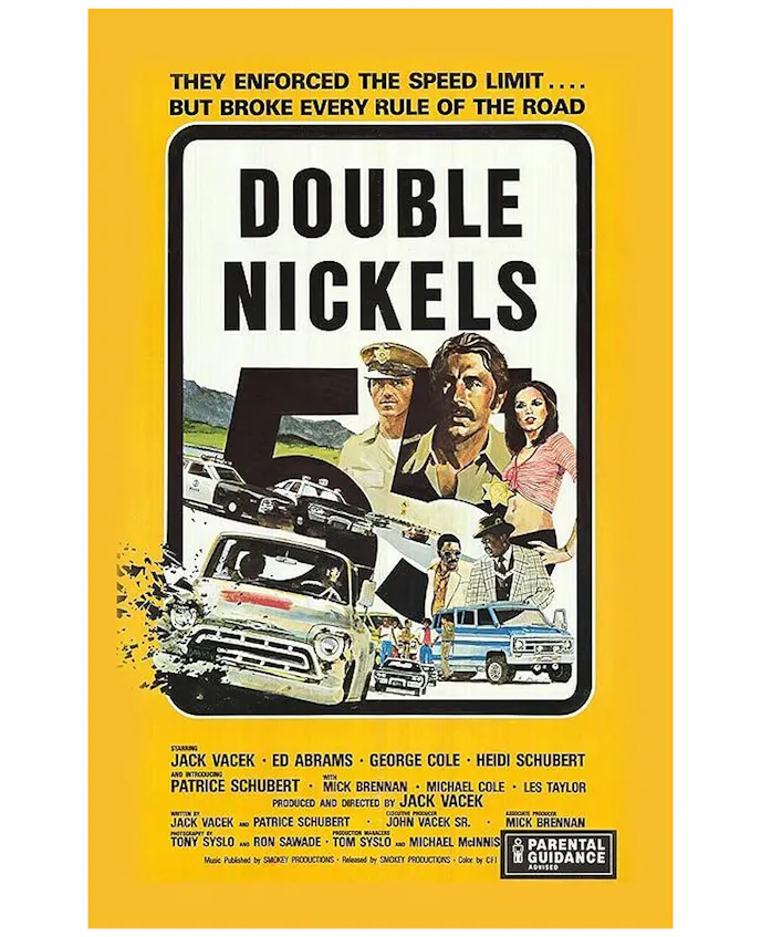 Double Nickels was produced and distributed in the United States by Smokey Productions. Having worked on H.B. Halicki’s prior low-budget movies, the original 1974 version of Gone in 60 Seconds and he Junkman, a relative unknown, Jack Vacek, took it upon himself to try his hand at being an auteur filmmaker. He wrote, directed, produced, edited, acted, and performed stunts in the picture.
