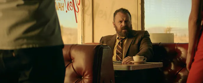 Inside, they encounter the establishment’s manager (Phillips), short order cook (Hickman), waitress (Gray), and a more than slightly deranged-looking female patron. All are acting a bit off, so Sarah and Michael decide to take their meal to go and hit the road again.