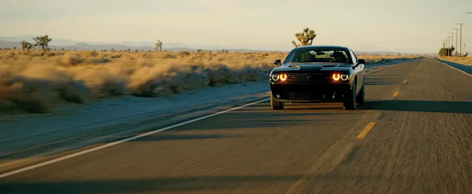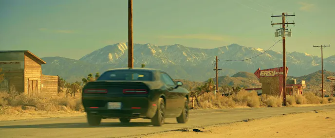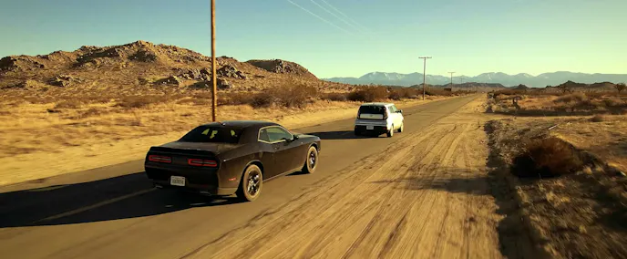 In what is obviously a nod to that quintessential, desert road film of decades past, Vanishing Point, the filmmakers chose to afford the demon today’s prime retro-themed muscle car, the Dodge Challenger. Although completely murdered-out from paint to wheels as opposed to the former film’s bright white hero car, The Fearway’s Challenger, with its throwback body lines, works well with the evocative time-shifting theme of the movie.